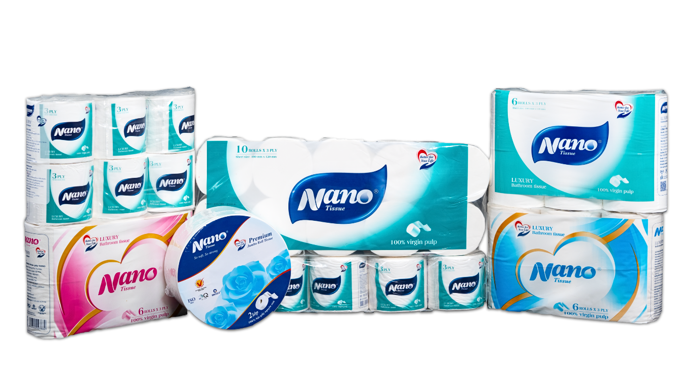 Giấy vệ sinh Nano Tissue là thương hiệu được người dùng đánh giá cao về chất liệu mềm mịn, an toàn và công nghệ sản xuất sạch. Nano Tissue cung cấp cả hai dòng giấy vệ sinh có lõi và giấy vệ sinh không lõi phù hợp đa dạng phân khúc từ gia đình đến doanh nghiệp.